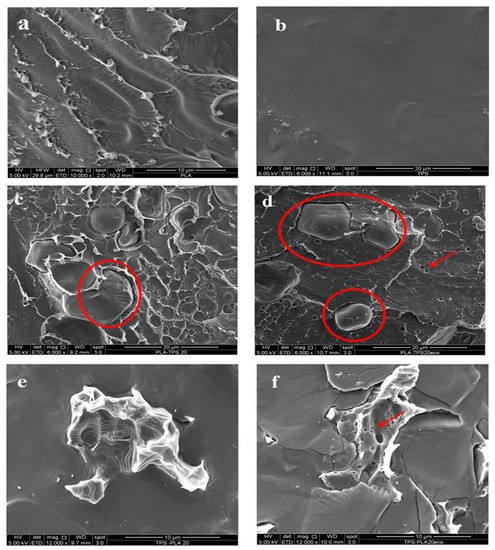 In this work, biodegradable films based on poly (lactic acid) (PLA) and corn thermoplastic starch (TPS), additivated with epoxidized cardoon oil plasticizer (ECO) at 3% by weight with respect to PLA mass fraction, were prepared by melt extrusion process and compression molding. The effect of ECO on structural, thermal, mechanical, barrier, and spectral optical properties of the films was investigated. Spectroscopic analysis evidenced the development of physical interaction between oil and polymers, mainly PLA. In addition, no oil migration occurrence was detected after six months of film preparation, as evidenced by oil mass evaluation by precipitation as well as by 1H-NMR methods, thus highlighting the good inclusion of oil inside the polymeric network. The plasticizing action of the oil induced a lean improvement of the interfacial adhesion between hydrophobic PLA and hydrophilic TPS, particularly accentuated in PLA80_ECO composition, as evidenced by morphological analysis of blend fracture surfaces. TGA data underlined that, differently from TPS-based films, PLA-based systems followed one degradative thermal profile suggesting a slight compatibilization effect of epoxidized oil in these films. The shifting of Tg values, by differential scanning calorimetry (DSC) analysis, indicated a weak miscibility at molecular level. Generally, in the investigated blends, the phase separation between PLA and TPS polymers was responsible for the mechanical properties failing; in particular, the tensile strength evidenced a negative deviation from the rule of mixtures, particularly marked in TPS-based blends, where no physical entanglements occurred between the polymers since their immiscibility even in presence of ECO. The epoxidized oil strongly improved the barrier properties (water vapor permeability (WVP) and oxygen permeability (O2P)) of all the films, likely developing a physical barrier to water and oxygen diffusion and solubilization. With respect to neat PLA, PL80 and PL80_ECO films evidenced the improvement of surface wettability, due to the presence of polar groups both in TPS (hydroxyl residues) and in epoxidized oil (oxirane rings). Finally, following to the conditioning in climatic chamber at T = 25 °C and RH = 50%, PLA80 film became opaque due to TPS water absorption, causing a light transmittance decreasing, as evidenced by spectral optical analysis.